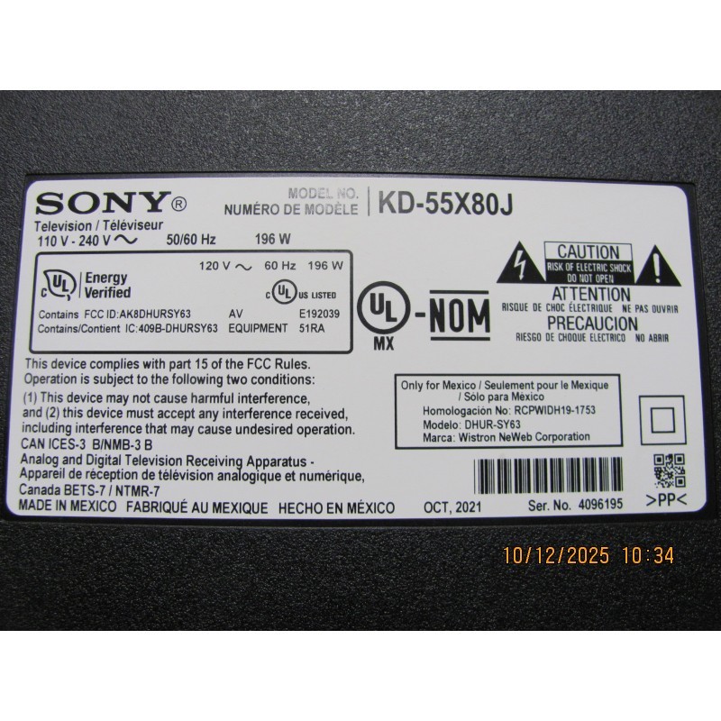 SONY: KDL-52S4100. P/N:...